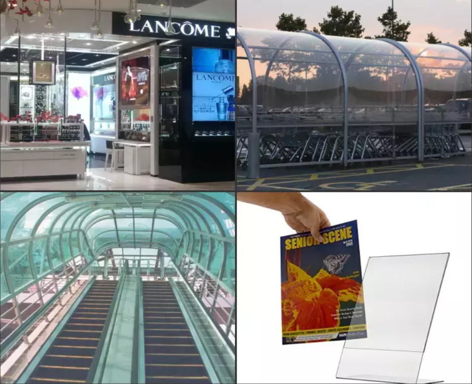 PETG se utiliza como un producto de precio medio entre Acrílico y Policarbonato.La claridad del PETG se acerca a la del Acrílico y la Resistencia al Impacto del Policarbonato.También se utiliza en letreros, acristalamientos, exhibidores POP, etc.
