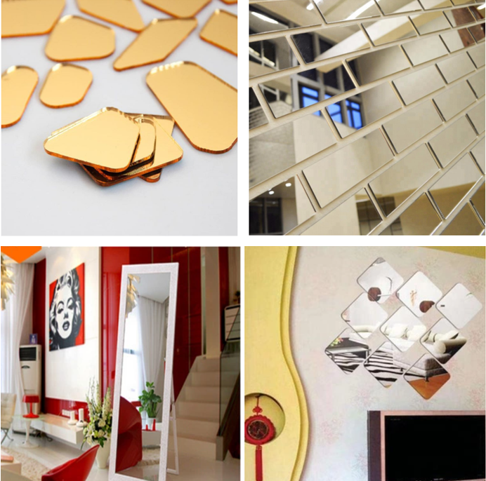 El panel de espejo acrílico se usa ampliamente en escultura, publicidad, pantallas de lámparas, decoración, equipos médicos, estantes de papelería, regalos, muebles de cocina y baño, decoración arquitectónica, óptica y obras de arte.
